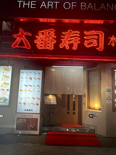 Oban-Zushi sushi restaurant is located on the corner of the Kuyakusho-dori intersection in Kabukicho, in Shinjuku.
