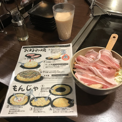 Read more焼肉きんぐやラーメン丸源などを展開する愛知・物語Corpのブランドの一つで世の中には珍しいお好み焼きやもんじゃやたこ焼きなどの粉もんを食べ放題として提供する珍しい形態を取っています。鉄板そばには親切にもお好み焼きなどの焼き方指南とタイマーが設定されており焼き方に不慣れでもカンや技術では無く一定のレベルの内容でお好み焼きなどを作れるように設備が作ってあります。お好み焼きだけで無く鶏肉やホルモンなどの鉄板焼きやサラダやおつまみ類やアイスやソフトドリンクなどもフリーとなっており何故か関西方面では欠かせないミックスジュースも置いてありコレがなかなか美味しかったりします。スタンダードコースは粉もん中心ですがプレミアムコースにすると牛カルビやサイコロステーキや牛ロースしゃぶや牛ハンバーグなどの牛肉類や海老イカタコ等の海鮮類も食べ放題になるのでちょっとしたバーベキューも楽しむことが出来るようになっているのがタダのお好み焼き屋とは違うところ。もしプレミアムコースにした場合肉・海鮮メインにするか粉もんメインにするか結構悩...