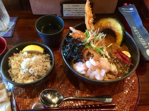 とても美味しい。お店の雰囲気も良し。 沢山のメニューがあり、どれも美味しいのだが、 中でも海老の宝石箱が圧巻!海老天、ソフトシェルシュリンプ、車海老、桜海老、海老しんじょ、えびせんなどなどこれでもか、とばかりの海老づくしで海老好きなら絶対に食べなきゃ損である。こんな新鮮な海老のカレーを毎日出せるお店なんてそうそうないよ。(大抵の店は冷凍のバナメイエビをブラックタイガーと称して出している。) ご飯は白米だけでなく数量限定で玄米もあるので玄米食べたい人は早めに行かれる事をお勧めする。 スープベースはノーマルのチキンスープとあと追加で生クリーム入りのクリーミーなエビスープと薬膳スパイスをこちらがストップするまでミルで挽きながらかけてくれる薬膳チキンスープがある。 辛さ調節も(睦月、如月、弥生と月の名前で上がっていき、最後は師走、MAXの閏月まで)生の唐辛子が加わってくる為レベルあげるに連れてどんどん辛くなるが、決して味を壊さない。MAXレベルの13番閏月は青唐辛子が数本浮いており、これを齧りながら食べるとかなり強烈な辛さになる。 最初値段だけ見るとかなり割高な様に見えるが実際のスープカレーはかなり具沢山で量が多く、しかもゴージャス感もすごいので結果プライスレス。ここのスープカレーは出てくるまで時間が掛かるが、それは調理の際にその都度スパイスを調合していたり、具材なんかも揚げ物とかは揚げたてであったりとかとにかく手間暇かけて出来たての美味しさを提供する為である事を思えば納得出来る範囲内である。これを回転率悪いとか我慢出来ない様な人間はセントラルキッチンで調理済みのパックを温めて出すだけのカレースタンドで喰ってろ。 そしてこのお店でベルジャンホワイトのヒューガルデンがカレーに合う事を知った。(現在は高尾ビールというベルジャンホワイトの地ビールに代わった。) ここは開店一時間まえにはお店前で記帳しないとなかなか入る事が出来ず、相当時間に余裕がある時じゃないと来るのがむずかしくて一年に1〜2回来れれば良い方で長い時は2年くらい間が空いた事もあったのだが、店員さんはなんだかしょっちゅう来てくれている気がすると言う。実はドッペルゲンガーが来ていたりして。それともまさか筆者の双子の弟が…?まあいくらなんでもそれは無いか。いずれにしても覚えてくれ...