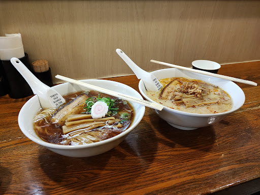 Not a ramen expert and haven't had a lot here in japan yet but this place felt really local. Owner was super nice and awesome. Had the English news on the background which I thought was interesting :) we took the booth as we had two kids and a stroller. Not many options but pretty cool and different ramen to choose from like apple ramen. No ticket machine, just awesome social interaction with the...