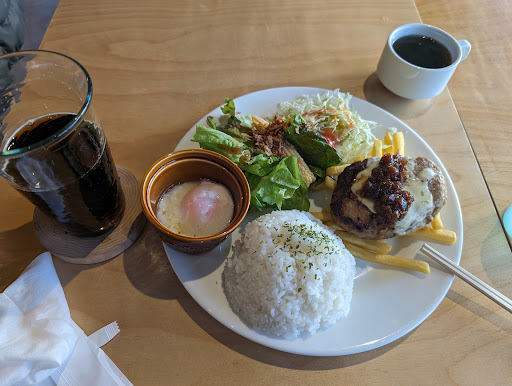 One of the only places to eat on the Old Omekaido Road in Ome. Food is homemade and with a few tweaks could be really good. I think it's run by a young couple. The guy is "hipster" modern Japanese and not very friendly; he didn't seem glad that we were there. They have a selection of Ome craft beers but the "dude" wouldn't let me have the one I selected, trying instead to convince me to have one of the flavored beers which I can't stand, or the 10% Stout. I ordered a melon soda out of frustration. The place is small--an old storefront. The tables are bar size small. If you look up at the ceiling you can admire the old wooden beams. They also have an extensive collection of 70s LPs like KC & the Sunshine Gang, The Jackson Five, etc. but I think they only play these at night. Maybe the tables are small so people have room to boogie. "Do a little dance, make a little love, get down tonight...get...
