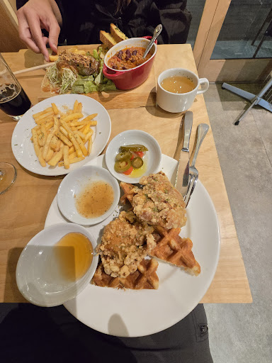 店内のテーブル席はほぼ満席で、空いていた4人用の机を2人で使っていましたが、食べ終わって間もなく、また別のアルバイト?の方が「机を移動して4人の席を作ります」と言って、ガサガサと机と椅子を、窓際の2人用の机に合体する作業を仕出しました。次の人も来てないのに、そしてこちらも食べて間もなく、長居をしてるわけでもないのに落ち着かない… このアルバイトの方も若そうだったので、言われたことをしているだけなのかもしれませんが、サービスのレベルがひどすぎる… お店の真の目的は分かりませんが、価格設定やサービス、料理内容といい、儲けを出そうとする姿勢が全面に出ているようにも感じてしまいました。 サービスにやる気がないのは確かに前も感じました。フライドチキンとビールは美味しかった記憶があったので、今回また訪問したのですが、色々と重なり、残念な思いのほうが強くなってしまいました。 『夏への扉』のカレーのほうが安くて美味しく、雰囲気も良いので、連休の締めとしては良かったかも?という後悔も。また機会があれば、フライドチキンは食べに行くかもしれませ...