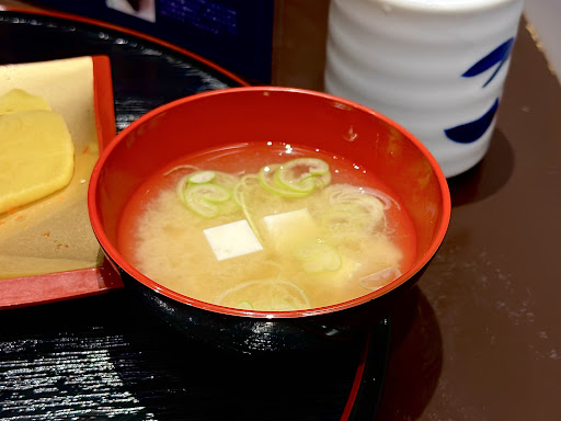 午前中に味噌汁を注文すると 豆腐汁198円、なめこ汁308円 が、100円引きに😁‼️‼️ しかも、お代わり自由とな。嬉しいサービス♥️