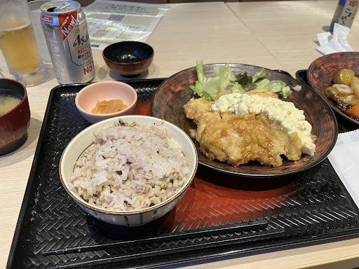 Read more五反田駅東口はレストランが多数あるものの、カレーやラーメン、居酒屋など、特定の料理のみを給仕するレストランが多く、いわゆる定食屋はそれ程多くないように思います。そのため、この大戸屋は昼食時間帯は勿論夕食時間帯でも連日のように混雑します。 昇降は階段のみで、車椅子等の障碍を持つ方、大きな荷物を持つ方の利用はお勧めできません。混雑している時に利用すると、順番待ちとして事前に名前を記入し、呼ばれるまで待ちますが、待つためのスペースが店内にも店外にも皆無で、店外の階段で待つ人も多く、同じビルの別の事業所を利用する人の昇降の妨げになることがしばしばあります。 注文時は、他の大戸屋でも見られるタッチパネル式のデバイスを使用しますが、それを使用することによる効率化を図っても尚スタッフは忙しなく店内を動き回っているのを見かけます。給仕される料理の質や量は、他の大戸屋と遜色ありません。
