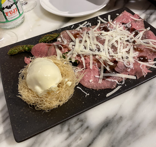 Read moreLast day in Japan and squeezed in one last catch-up with a buddy before heading to the airport and thus this was his choice. This Ore-no series started expanding into different cuisines ever since I left Japan and it is worth mentioning that they offer casual and reasonably priced food. We obviously couldn't make any booking since it was a la minute, we waited over an hour to get in so do make a booking in advance! We were lucky to have been seated at the bar counter seating since unbeknownst to us a live piano performance took place right in front of us in the middle of our meal! We shared carpaccio as a starter and I had venison (seasonal item) while my friend had the duck confit. Plus couple glasses of wine. Portion was generous and my venison was amazing! Bill was under 10,000 yen for the two of us which would be unheard of in the states....
