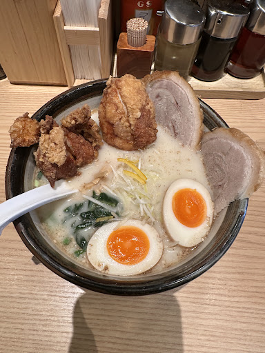 Read moreI went to the location up the same road on the left from this ramen shop. Google map does not show it but this is my review since both shops are the same exact chain. The food was amazing! I believe I ordered the Otokomori ramen and it was just unbelievable one of the best ramen I had in Japan. The worker there was super friendly and helpful. You order from the machine and go sit inside. The worker will ask you some questions which I did not understand because I don’t understand Japanese. He knew English and helped me make my bowl. The fried chicken was still crispy despite it being in broth. The broth was strong and flavorful. Noodles were normal sized and had great texture. Overall, the food and staff were amazing! Despite it being a chain in Japan, don’t be fooled. I would highly recommend for some tasty cheap ramen. The prices and quality...