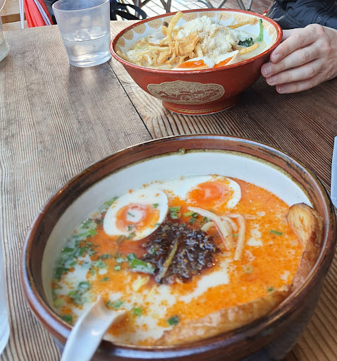This season specials: autumn moon viewing cheese vege ramen and extreme pork bone ramen (tonkotsu). My husband liked the cheese vege ramen very much. I had the pork based ramen, limited to this season, and it was very good too! Slightly spicy oil on top and chili flake. Those who like hot food would like this in the cold weather. Tip: let the half boiled egg soak in the soup to warm it Additional seaweed and pepper made...