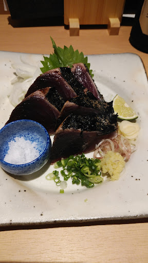JR立川駅南口側にお店があります。 まず、目につくようにお店の壁面に豊洲市場直送、カツオの藁焼きの文字が記されていました。 地元民ではないので、恐る恐る入ってみました。 入店して利用人数を伝えると、元気良いスタッフさんたちのあいさつがありましたし、利用されているお客さんはかなりたくさんいらっしゃいました。 席に案内されると、スタッフさんよりおすすめ料理のチラシをいただき、いくつかのおすすめ料理を案内していただきました。 もちろん、お店壁面に記されていたカツオの藁焼きは案内されたので、オーダー。 その他いくつかのおすすめ料理をオーダーし、待ってました。まずは、オーダーしていたお酒を持ってきていただき、付き出しと共にいただいていました。 お料理のオーダーをしていて時間が経たないうちに、お店にスタッフさんより、お料理のオーダーはされてますか?と尋ねられました。こちらは、もちろん、と返答しましたけど、再度スタッフさんより、オーダーが入っていないとのこと。 普通の居酒屋さんだったら、スタッフさんよりオーダーの確認をわざわざ尋ねに来られることはないのに、全体的の状況を把握されているようで、こちらのオーダーが入っていないことを気付かれたようですね。 お料理がくる前から感動ものでした。 そこからはスムーズにオーダーしたお料理は次々と持ってきていただきました。 やはり、おすすめのカツオの藁焼きは美味しかったです。ほとんどのお店では、ぽん酢か刺し身醤油などを提供されますが、こちらのお店ではお塩でいただくタイプ。 自宅で鮮魚店から買ってきたカツオの藁焼きはお塩でいただいていたので、ピッタリはまりました。 あと、お刺し身の盛り合わせのそれぞれのお魚も新鮮でめちゃめちゃ美味しかったです。 その他のお料理もそれぞれの素材の特性を活かした調理をされていて、とても美味しかったです。 またこの地を訪れた時は必ず行...