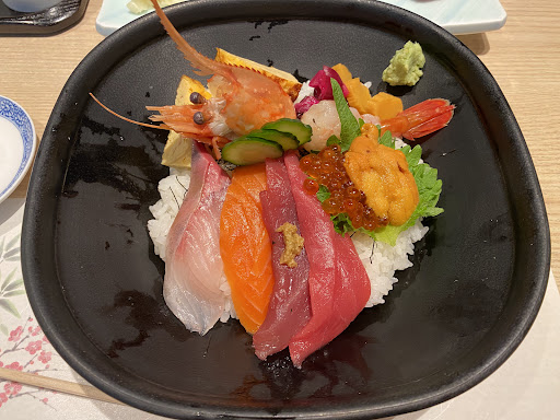 Seafood Chirashi: 10/10 for freshness, 5/10 for the range of seafood, and 0/10 for portion size. There was only one piece each of salmon, kingfish, and fresh prawn, along with some ikura, uni, two pieces of tuna, egg, and pickles