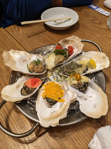 Read moreTake this review with a grain of salt. I'm from Seattle where we're spoiled with quality oysters, so I thought that this restaurant was just ok? It was good, but not memorable in comparison with everything else there's available to eat in Tokyo. The raw and grilled/steamed oysters were by far the best items, and they seem to have a pretty good happy hour. The rice pot was not cooked well (rice was a little raw) and very forgettable. For all of the raw oysters though, the cleaning is absolutely superb - no shell or grit ever! That part was very impressive. The raw oysters are on the paper wall menus, but the normal ones they give you, so be sure to check the wall specials. Only issue was sometimes it was difficult to flag...