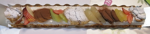Read moreずっと以前から、小金井街道沿いに🇫🇷の旗のあるパティスリーがあるのは知っていました。けれども、いつもバスで素通りしてしまい、行ったことがなかったのです。 親しい友人へのプレゼントに、焼き菓子を選びたいと思い、初めてお店に行きました。西武バスを利用し小金井公園北で降りるとお店は目の前で、横断歩道もすぐそばで、とても便利でした。 お店に入ってすぐ、私の知っているケーキ屋さんと全く違う、圧倒的な焼き菓子の種類、季節のお菓子の種類、美しくておいしそうなケーキの数々に心を奪われてしまいました。これまで、都心に行かなければ買えないと思っていたような、あるいはそれ以上の、素敵なものにあふれていたのです! 焼き菓子は、友人用に買った他に自分用にも買って食べてみて、小さくても風味豊かでとても食べごたえがあり、自分のご褒美用に毎月買いに行きたい!と思いました。 せっかく来たのだからと思い、1つずつのケーキも少し買いました。ケーキはチョコレートやチーズのそれぞれの味が、本当にこういう味であってほしいと願った濃厚な美味しさでした。 後日、家族の集まりがあり、気になっていた長〜いロールケーキを買いました。フルーツや焼き菓子などがトッピングされていてとてもきれいで、このお店のエッセンスが詰まったような逸品でした。家ではナイフを拭きながら切り分けました。 あまり器用でない私でも切りたいところで切れたので、みんなでそれぞれ食べたいところをいろいろ食べられて楽しかったです。見た目よりずっと口当たりが軽く、甘さも控えめなので、あっという間に無くなりました!私は、店頭にあったものを買ったのですが、お店の方にお聞きしたところ、二日ほど前くらいに注文も出来るそうです。 お店には、コンポートや、アイスなど、通い詰めないと買い切れないほどいろいろあって見ているだけでも本当に楽しいです。バスで通勤、通学などで、素通りしておられる方、是非一度、小金井公園北のバス停すぐそばのこのお店にお立ち寄...