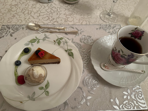お料理はまずまず。 ワインは最初のうちは注いで下さいましたが、お客様が増えてくるとなかなかサービスが滞りました。 フランスパンがなくなったら、「パンはいかがですか」と聞くのが普通のレストランですが、聞かれず、自身からお願いしました。バターも頼まないと持ってきてくれませんでした。 最後のコーヒーか紅茶の際、 このクラスのレストランならば、「レモンかミルクのどちらになさいますか?」と聞くのが当たり前だと思いますが、聞かれず、ドトールの紙のスティックのお砂糖とフレッシュミルクが出てきました。 お砂糖も普通はブラウンシュガーとホワイトシュガーの角砂糖が出てくるはず、ミルクもピッチャーに入っているはず、がっかりしました。主人も「これはないよね」と呟く始末。
