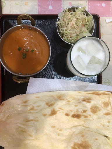 a small but cozy restaurant that serves great food! My friend and I got the 2 curry set (1150¥) and cheese naan set (1300¥), both sets came with naan, 2 kinds of curry (there were so much to choose from!), a small serving of rice and salad, and a drink of our choice, which was mango lassi (suuuper good). It was super good and filling.