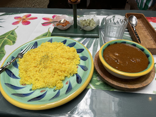 Read more店主の人柄が良い。 インドのカレーでチキンは、スープカレー。祖母の先代が本場の先生から習ったレシピで料理を提供し、スパイスが効いてて辛口。辛いのが苦手な人には不向きだが、カレー好きならサフランライスと手作りのスパイス辛口玉ねぎ炒めやピクルスなどのお新香的な役割の副菜と食べるとgoo。 カレー屋さんだが、外観がイタリアンかハワイアンな感じでお店が上なのかと間違えて階段上がってしまいそうだが、お店は下で、店内だが何故か半分は外に居るような作りでハワイアン。面白い作りのお店。 また、仲良くなった常連客のみ教えてくれるシークレットデーに食事に行きたいと思います。知りたい人は、ランチで直接店主のさんと仲良くなり情...