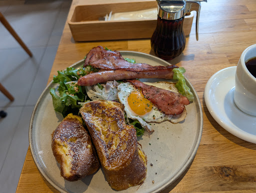 Read moreVery filling breakfast and nice atmosphere! I got the avocado Dhakka toast with scrambled eggs and mushrooms as a set with a hot latte. I was so full, but I was temped so I also ordered the brûlée basque cheesecake. Everything was delicious and did not disappoint! You order everything with a QR code using your smartphone, there is wifi, and the staff are friendly. It was a Sunday so it was quite busy. I got in around 9:40am, and there were only a couple of seats open. By the time I was leaving (around 10:30) there was a line of people waiting to be seated. I will...