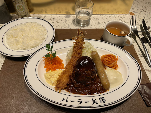 Read moreA great Japanese western style combo meal set (Yoshiki) inside Azabudai Hills Market which is not the most quiet place but I suggest you go there just for the food alone or maximum 2 pax. Their signature combo plate includes hamburg, ebi-fry (fried panko crusted shrimp), sausage, mashed potato, ketchup spaghetti (classic garnish). Comes with consommé soup but mine had a slightly funky beefy flavor (kind of game-y in a bad way). There are many additions to choose from and I chose katsu.