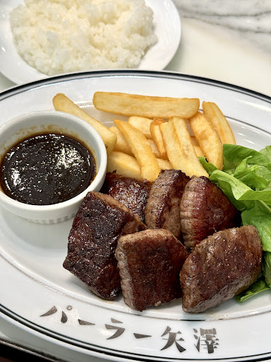 We tried both the diced steak, as well as the erstwhile “kids’ meal” (the Parlor Yazawa Plate, as they call it), with an additional fried scallop. The opening consommé was merely okay, with someone hilariously describing it as “like Bovril”. And the diced steak was rather overcooked in parts, ranging from medium to medium-well. But the last plate fared much better.