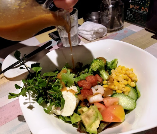 私、野菜が大好きなのですが、こちらのサラダはどれもボリューミーで美味しそうで迷う! オススメの「具沢山のPECORIサラダ」にしてみた。 ドレッシングは自家製なんだそうです! 別添えなので、自分で好きな量かけられるのがいいですね(°∀°)b