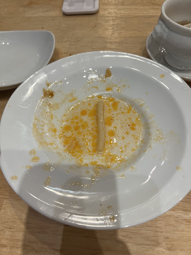 皮蛋豆腐:在其他中餐点过这道菜,印象里酱汁应该是咸甜口偏甜,个人很喜欢的一道解腻凉菜,这家做的很烂,皮蛋很少很硬,中间流心的部分去哪里了都不知道,明显都是切的边角,酱汁就是普通的生抽没有调别的任何东西,很咸,跟吃盐巴沾豆腐一样,但是豆腐本味也难吃不到哪里去吧……谁能把豆腐做的难吃也是很有才,这家店就挺有才的,所以点了以后吃了一口就放在一边没再动了,想着后面能零零散散解决掉