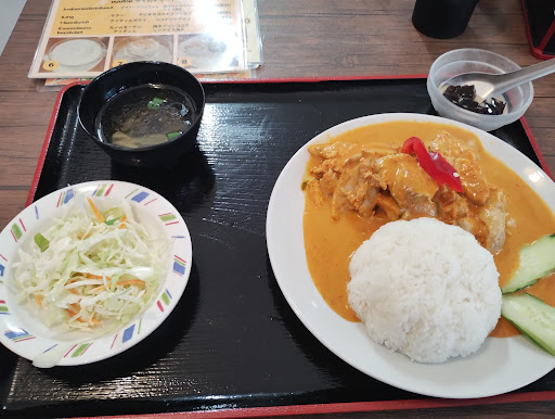 カレーは大皿で提供されます。 鶏肉もなかなかのボリュームで香草も使われており美味しいです。ライスは日本米ですね。 サラダは鮮度がいまいち?なのか独特な歯ごたえ。 タイ料理らしからぬフレンチドレッシングでがっかり。この価格ならヤムウンセン的な工夫はほしいところ。スープは美味しいです。デザートは珈琲ゼリーの欠片。 1200円のためにメニュー数を無理やり増やしている印象。 なんとなく現地の屋台っぽさはあります。 カレーの味はなかなか良いですがコストパフォーマンスは良くないです。 1000円ならまだ許せますが1200円ならもっと満足出来るお店は多いと思います。 ★3.3くらいのお店です...