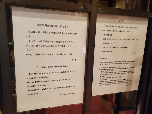 I do not reccomend taking little kids here, maybe they need to be 7 or 8 years old. Luckily my kid is very well behaved! It is very odd it's not family friendly as we have been to way more expensive and fancy where it's ¥10,000+ per person and need advance reservations but Nicola does not want parents with kids no...