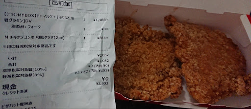 Pizza and chicken we're still good after the 15min walk to the hotel. Food wasn't piping hot, but still warm. Fries were a bit soggy, but still tasty. Toppings tasted fresh, sauce is sweet and zesty. Crust was one of the better once I've tasked during my few weeks in Japan.