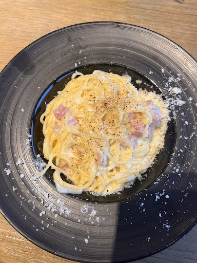 We came here in between dinner and lunch hours, we absolutely loved our meal and will be coming back. We were quickly brought to a table and brought water and menus and was offered a child booster seat. We ordered the 2 pizza's and a steak, and a kids meal. They did mess up our kids meal and brought us the spaghetti instead of the margarita pizza, but they changed it swiftly with no attitude as usual Japanese customer service is. Our steak came from a special price deal and was a set. the salad that came with it was an amazing mix of flavors together the smooth and soft mozzarella cheese mixed well with the tangy dressing and earthy vegetables mixed in with really well the octopus. The steak was cooked beautifully rare/medium closer to rare with their own made steak sauce. I asked the cashier who told me that they make their own Japanese style steak sauce in a factory. The steak was the best I've had, not just in Japan but also in America, it didn't need the pizza salvatore cuomo original steak sauce for it to be amazing but the sauce leveled up the depth of the flavor. The pesto pasta wasn't the best on the other hand but was good enough to fill the craving of pesto pasta. it needs more nutty flavor in my opinion. its more olive oily than nutty and basily. the noodles were cooked good. the pesto was ok just not amazing like the steak was. The pizza's were thin crusted and also well balanced flavor and good. the award winning pizza in my opinion wasn't that much different from their other pizza's. it was...