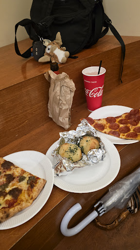 Then I wanted redemption and while I was out around Cat street what do I see but a sign that says Pizza Slice in front of a set of stairs. I check reviews, and heartened by reviews, I go and have a slice of pepperoni. What I find is plenty of seats, a fun atmosphere, and great service to ensue.