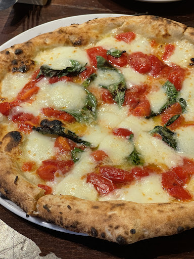 ●マルゲリータS.T.G ¥2640 世界ナポリピッツァ選手権一位を取得した品 S.T.GとはEUの伝統的特産品保証のことらしい 日本の小麦粉で取れるとは凄い ピッツァの生地は強力粉程ではないが サクっとし噛むとムッチリしていて少し粘りがある 強力粉だともっとバリッとした感じになるので あまり無い食感だが美味しい 因みに塩味は薄め チーズは水牛のモッツァレラ?やや黄身がかってて めっちゃ伸びる ほんとこれ水牛? ここでもトマトが美味しい これは外せない一品な気がする