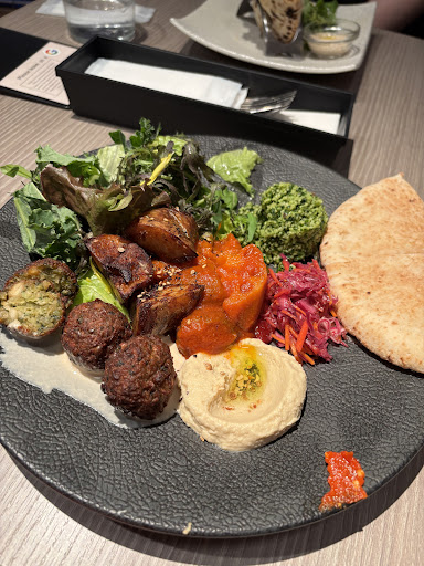 We had an incredible dining experience at Plant More, a true gem for vegan cuisine lovers! The presentation of the plate was beautiful and colorful, and each item was packed with flavor and freshness. The falafel was crispy on the outside and soft on the inside, the hummus was creamy and seasoned to perfection, and the roasted vegetables were bursting with rich, warm flavors. The salad was crisp and refreshing, and the tabbouleh was light and herby. The pita bread was soft and paired perfectly with the dips. The red pepper dip added a lovely kick, balancing the flavors beautifully.
