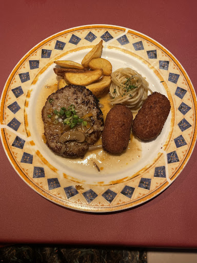 サラダ🥗ドリンク☕️付き 名物のパエリア🥘 ハンバーグと蟹クリームコロッケ (デミグラスor和風きのこソースが 選択可能で後者をchoice)