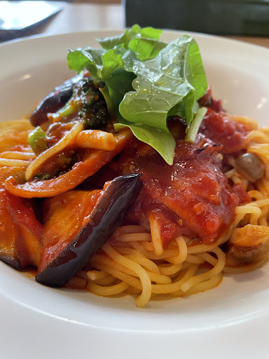 ランチセットには限られたパスタ+サラダやドリンクを付けても同じ位の価格で食べられる物もありますが、1人でササッとランチでしたので、少しのサラダや自販機みたいなドリンクバーを頂くより少し豪華なパスタを頂いた方が得策かと。 結果 マッシュルーム 揚げなす ブロッコリー ベーコン ソーセージ がたっぷり、上にはルッコラが添えられていてメニュー名通り「よくばり」な具材で満足。 トマトソースもガーリックが効いていてパンチあり美味しかったです。 12時30分ころ行きましたが、ほぼ満席でした ミニコース的なメニューもあるのでママ会なんかにも良いのでしょう。 席数もあり...