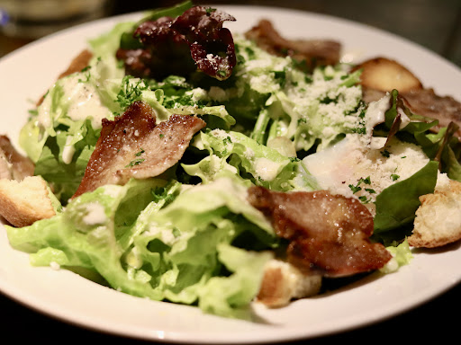 2軒目だったのでそんなには食べませんでしたが、 名物のローストポーキーズ、シーザーサラダ、自家製ソーセージ、ズッキーニのラグーのせ、フライドポテトのホイップバターのせ をいただきました。