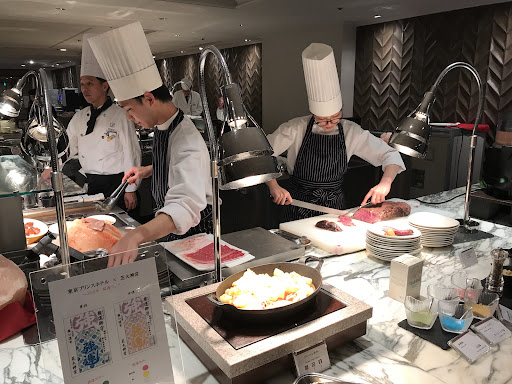 Western & Japanese-style buffet dining, plus an outside terrace with Tokyo Tower views.