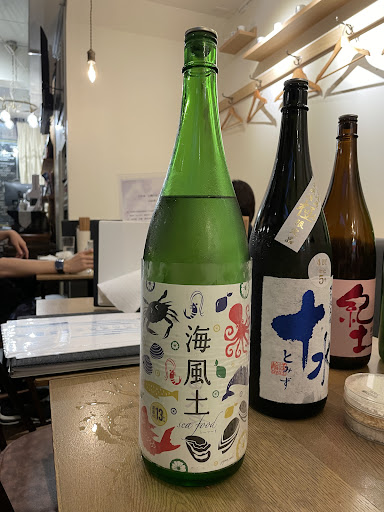 Read moreIs it possible to have seven stars for service? We walked in without a reservation to discover that a party of five could not be accommodated. However, Fumiaki Kako, the owner gave our three kids the table and had my wife and me sit at the bar. We ordered a sake flight to start and that's when our adventure began. You don't just get excellent sake here. You get a sake mini-course while you sip and eat excellent food (pairing the deep-fried chicken with the chicken cartilage with pickle is highly recommended. You won't find this in the States!). So our four-sake flight turned into a 15-sake flight in no time. Complete with laminated cards showing how sake is made and how the rice is prepared. The bottle and beautiful glasses line up and the food keeps coming (you haven't lived until you eat a plate of their hot anchovy French fries). And the whole time Kako keeps up a steady stream of fascinating information about this wonderful drink while also running a very bustling and lively joint. We were all very impressed and charmed. Wonderful service, wonderful food, great kindness shown to five Americans on their first trip to Japan. We got to don the official aprons and take a picture with Kako as well. Once again, just walk down any small street or alley anywhere in japan and an amazing dinner experience can be found. This one was a highlight of our trip. Thank you so much for taking such good care of us, Kako, and for you sage advice to match sake drinking with...