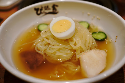 【非常にコシの強い王道盛岡冷麺を味わうことができる銀座のオシャンな焼肉屋さん】⠀ ⠀ 銀座『ぴょんぴょん舎 GINZA UNA』⠀ ⠀ 本日ご紹介するお店は、東京、銀座のビル11階にお店を構える焼肉店『ぴょんぴょん舎 GINZA UNA』。食べログ100名店に掲載されている為、名前は聞いたことがありましたが、訪れるのは初。焼肉屋さんなのは知っていたのですが、まさか冷麺を全推しのお店だったとは!ということで、ランチタイムに盛岡冷麺を食べに訪れてきました。⠀ ⠀ 銀座駅から徒歩1分もかからない『ギンザ・グラッセ』の11階にこちらのお店はあります。エレベーターで上がり、店内へ入ると広々とした空間が。店員さんの接客もどこか品があり、席への誘導までが非常に親切でした。⠀ ⠀ 基本ソファー席か窓際のカップル席。白を基調としており、明るい雰囲気で溢れていますね。夜になれば数寄屋橋交差点を眺めることができるので、デートなどでも使えそう。⠀ ⠀ この日はソファー席にて、おめあての「盛岡冷麺 ミニビビンバランチ」をいただくことに。冷麺は、別辛・中辛・特辛・激辛から選ぶことができるとのこと。辛さの上限が低い自分にとっては、塩梅を調整できる別辛の一択でしかないですね。⠀ ⠀ しばらくしてから、「盛岡冷麺」から到着。冷麺=盛岡のイメージが強いけれど、そもそも「盛岡冷麺」ってなんなんだろう。そのルーツを調べてみると、盛岡の麺職人である青木 輝人氏が朝鮮半島の「咸興冷麺」と「平壌冷麺」を融合させ、作りはじめたのがきっかけなんだとか。⠀ ⠀ それぞれスープの甘辛さやまろやかさ酸味、麺の強いコシや素材など特徴の良いところをうまい具合に組み合わせたのが現在の「盛岡冷麺」とのこと。盛岡冷麺といえば、非常にコシが強く、ツルッとした印象を持ちますが、その喉越しの良さが特徴なんだとか。⠀ ⠀ 運ばれてきた盛岡冷麺はかなりツルツルした見た目。麺を掴むとかなりしっかりと結束されており、箸でゆっくりとほぐしていきます。⠀ ⠀ ある程度すくえる力になってから、全力で啜る!啜る!啜る!⠀ ⠀ うん!コシがかなり強くて、これは美味しい!出汁も癖がなく、美味しい盛岡冷麺を食べたいと思ったら、ハズレなさそうなので良いかも!⠀ ⠀ ビビンバ自体はパッとしなかったけれど、この内容で1,200円は十分にありだと思いました!同じ値段くらいで、セット内容をビビンバじゃなくて、お肉にできたりしないんかな…⠀ ⠀ でも美味しかったので、機会があれば夜も訪れてみたいと思います!!ご馳走様でした!⠀ ⠀ __⠀ 美味しいものが好きで都内中心に食べ歩いています。思ったことを書いてますが、素人なので、間違えることもあります。その際はご指摘いただけますと幸いです。外食する楽しさを、美味しいものを発信していきます。⠀⠀ __⠀ ⠀ ⠀ 【店舗詳細】 ⠀ ◻️⠀ 店名:ぴょんぴょん舎 GINZA UNA ⠀ 住所:東京都中央区銀座3-2-15 ギンザ・グラッセ 11F ...