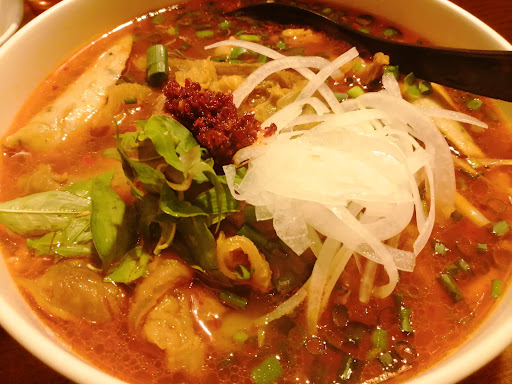 The bun bo hue tasted really similar to what I had in Vietnam, so authentic, I think. Nice thick and round rice noodles as it should be! It had many or inner organ meats and maybe tripe so keep that in mind. When I ordered it, the staff warned me that it's usually not a dish Japanese people order because it's got a distinct taste.