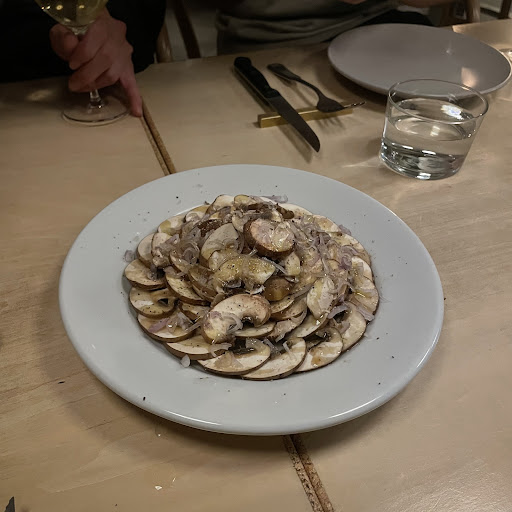 Read moreワイン、お料理とても美味しかったです。 特にワインが種類も豊富ですし、店員さんの知識も豊富でワインを楽しみたい方には最高です。 何となくでも良いので好みを伝えるとぴったりな一杯をセレクトしてくれます。 マッシュルームのグリーンサラダボリュームもあり、お野菜もドレッシングもすごく美味しかったです。お肉料理も素晴らしいです。 ただメニューの数は少し少ないです。 ワインに合うお食事をもう少し増やしてほしいと思いました。