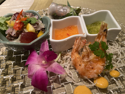 Jim Thompson's Table in Thailand Ginza is a Thai Department of Commerce 'Thai Select' certified restaurant. The location is at "Marronnier Gate" near Yurakucho Station. The interior is surrounded by Thai silk and has a calm atmosphere. It is a little expensive for Thai food, but you can enjoy the atmosphere. I had the main course, soup, and meal which I could choose what I like, and I especially recommend the green curry of young chicken with creamy taste and moderate spiciness. The platter of 3 appetizers and plates were wonderful and the taste was delicious. The Tom Yum soup with head-on shrimp is tasty spicy. The seats are a little small and noisy, but My recommend this restaurant when you want to eat Thai food while enjoying the...