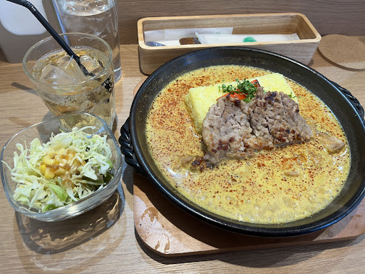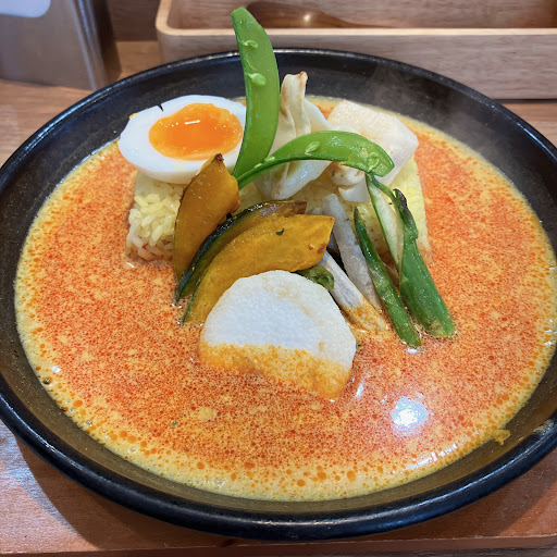 メニューについて QRでライン友達追加する必要があり、入店するだけで顧客情報を獲得する悪徳商法です。 なぜこの席数でライン注文にしたのでしょう。 注文するまでに時間がかかります。 カウンター仕様でスタッフ3人もいれば十分客に目が届くはず。 値段もそこそこするので期待しましたが乗っている豚ステーキはボリュームこそあるものの肉臭さが酷く食べきるのが必死、肉に臭みを消す等のアレンジをして提供して欲しかったです。 カレーベースは癖が強く万人受けする内容ではないので好きな人は好きなんだろうなと。 可もなく不可もなくといった印象ですが、味付け的には子供連れはほぼ入店不可、毎日食べたい味付けのカレーでもありません。