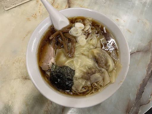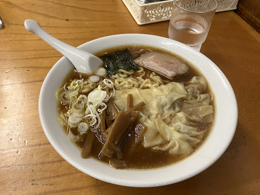 Popped in just at closing time. Apparently this used to be a noodle factory going back to 1910, then in 1950 they opened a ramen shop. The decor has not changed either. I was greeted by a nice elderly lady who recommended the wantanmen (ワンタンメン). It took 3 minutes to get my order. I went for the toppings first and they were excellent. The menma in particular had been marinated in something sweet, perhaps mirin. This complemented the saltyness of the chashu. The wantans were soft, doughy, and addictive. I don't usually like wantans in my ramen, but I'll make an exception for these anytime. The shoyu broth had a sweet note to it as well. I coudnt confirm, but I suspect the noodles were hand made. Additionally I ordered shumai (シューマイ) and they were kindly added for free :) I covered the shumai with ponzu sauce and mustard as per the woman's instructions, and they were deliciously satisfying. This was certainly a unique, old school tokyo style bowl and shop that I will come...