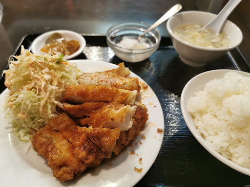 Read more浅草消防署のはす向かいにある中華料理店です。平日の13時にランチ定食の看板を見てふらりとランチで伺いました。店内に入ると先客は7割くらい特に席への案内はなさそでしたので空いている席に座ります。 「いらっしゃいませ~」の挨拶が少し片言の日本語でしたので中華系の方のお店だと直ぐに分かりました。お水が配膳されランチ定食の週替Aの鶏唐揚げ(700円)を注文。5分弱で配膳され提供の早さと見た目のボリュームにコスパの良さを感じます。子供のこぶし大のから揚げが5つで添えられているサラダにもボリュームがあります。ザーサイの付け合わせにデザートの杏仁豆腐。ご飯の盛りは定食屋さんの大盛でスープ付。