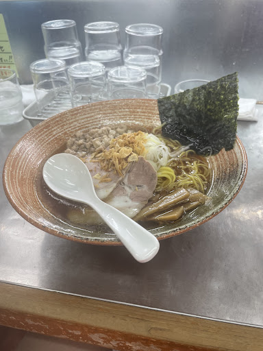・味 先ずはスープ。先に金目の香りがふわ〜と来てホタテとは違う複雑な貝の旨み。旨い奴なんで塩分はほどほど。うんめえ〜〜。染みる〜。 次にサッポロ麺。当然四谷とおんなじ。不思議と麺と啜った方が塩味が強い。 お待ちかねソース。もっと濃い〜しょっぱ味かと思いきや、えびしんじょの魚介版がペーストになった様な、お上品なのに濃厚コクウマ不思議ペースト!美味い和食を食べてる気分に。及川さんから「コレに麺つけてね」と教えていただいた通りディップして、、、のけぞる美味い(笑)玉子のコクも合わさって脳がバグる。しかもコレがたっぷりよそってあるんで終盤まで食べれて幸せ♪ 味玉も超半熟でうんめえ、、、トッピングの貝クズ?もいい味。 四谷の上品SPは塩味強くて完飲ムリだったけどココの旨い奴は私に丁度いい。もちろん完飲。 及川さんにお礼を言ってご馳走様。