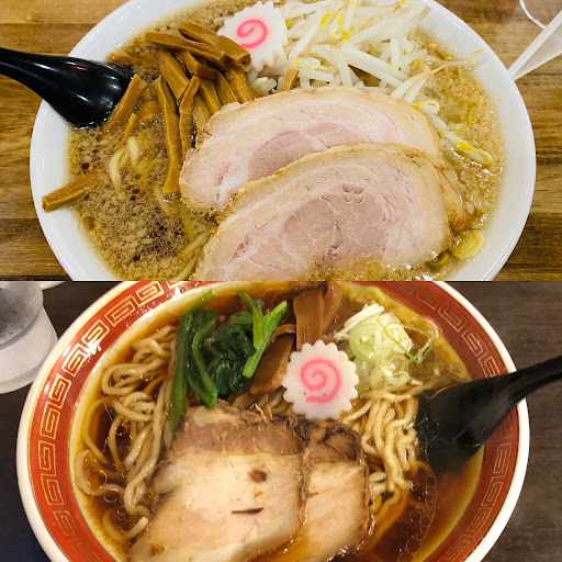 画像上が現在の背脂ラーメン、下が移転前の醤油ラーメン。