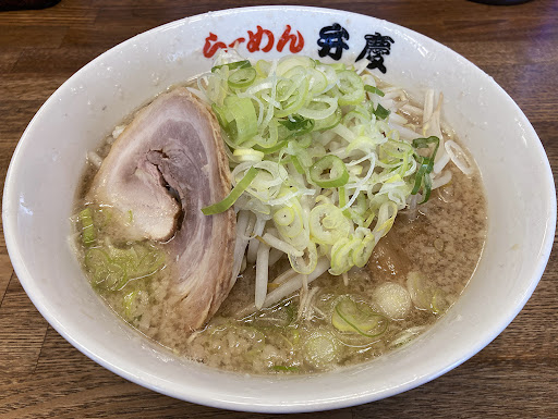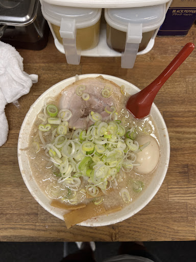 Read more2023年6月 平日の22:40頃訪問。2Fのカウンター席でいただく。注文は醤油ラーメン900円を麺硬めでお願いする。待つこと8分くらいで着丼。全体に背脂の雪が積もっている外観が美しい。まずスープをすする。豚のふんわりとしたコクに、野菜の滋味と旨味調味料のパンチが加わり、旨さの海の中で舌が痺れる。後味に背脂が微かに甘くたなびき、思いのほかさっぱりとした潔さがある。だから何度も何度もレンゲで啜ってしまう。麺は低加水タイプの細ちぢれ麺で、ブリっと歯に当たって、ブツっと切れる良い食感。硬めとしたが、この日の茹で加減は絶妙に良い。ほんのり小麦の青臭さが残るのも良い。そして量が多い。普通盛りだが一般店の1.3倍くらいある。お腹いっぱい食べてくれというお店の愛なんだろう。その愛を受け止めながら、一方で深夜に喰う量じゃないだろうという自戒も湧く。が、とにかくズバズバと食べ進め、お腹と背徳感がパンパンになったところでご馳走様。食後めちゃ喉が渇くのは既定路線です。---------------2023年5月 平日の19:00頃訪問。2階に上がって、つけめん900円のチケットを購入する。カウンター席に座り、味は醤油・背脂少なめ・麺硬めのお好みをお願いし、待つこと8分くらいで提供されました。どんぶりの中にこんもりと盛られた麺は、並にも関わらず2.5玉はありそう。覚悟を決めて突撃する。つけ汁は胡麻油がふんわり薫り、豚の脂のコクと旨味がしっかり効いて美味しい。そして適度なジャンクさがとても素敵だ。麺は細い低加水タイプで、プリっパツの歯応えが実に心地いい。あまり咀嚼すると満腹ゲージが上昇するので、適度に呑み込んでいくことを心がける。ズバズバと高回転ですすり倒しては、んぐんぐと呑み込んでいく。つけ麺の醍醐味を堪能しまくる幸せ。チャーシューを折り返し地点で頬張る。ペラいが肉の旨味が底堅く、噛み締める度に旨さが滲み出て来る。そして、胃にドスンと溜まる。麺が残り4口くらいとなったあたりから、苦行となるも、何とか食べきる。味玉を最後に食らうが、けっこうしょっぱい味付けなのね、君は。より確実な完食を目指すなら、咀嚼を少なくするために、麺は硬めにしない方がいいと思いました。腹13分目でご馳走様。---------------2023年5月 平日の17:40頃訪問。2Fに上がって味噌ラーメン950円のチケットを購入し、カウンター席に座って背脂少なめ・麺硬めのお好みをお願いする。先客はいない。待つこと7分くらいでサーブされました。トロミのあるスープをすする。濃厚な味噌のコクと旨味がべっっ・・ちょりと口内に広がる。うーん、旨い。なんというか、味噌汁を煮詰めたような、濃いのだけれも、穏やかさを伴っている味わい。3年前にいただいた味噌ラーメンをとはかなり違う印象です。背脂は少なめとしたが、ほとんどかかっていないようです。が、コクとコッテリ感は十分にある。このスープにはライスが合うだろうなぁ。麺はモソっとして芯にもちっとした弾力がある。この細麺がトロミあるスープをたっぷり持ち上げて、モソ&もち&みそべっちゃりの咀嚼ハーモニーがたまらない。すりおろしニンニクを投入するとジャンク感がぐいんと高まり、地獄の閻魔大王が脳を揺さぶって来る。麺量は相変わらず多く、お腹いっぱいになってご馳走さま。なお、5人の後客全員が味噌ラーメンを注文してました。この味噌ラーメンにはハマりそうです。---------------2019年11月 平日の21:00頃訪問。一階の立ち喰いカウンターで味噌ラーメン800円を注文。背脂の量は標準とした。味噌ラーメンは鍋で野菜を炒め、スープと味噌をあわせて加熱している。待つこと7分ほどで到着。アツアツのスープ。背脂は標準でも量多く、甘くまろやか。が、この背脂が味噌の風味を抑え込んで全体に甘いだけの一本調子の味。麺量は並でも多く、茹で前で220gほどありそう。後半飽きてしまいました。--------------------2020年10月 平日の14:30頃訪問。ラーメン800円の食券を買い、背脂少なめを申告。待つこと7分ほどで完成。薄茶色のスープは豚骨が香り、塩分と旨味調味料のエッジが効いたパンチのあるややジャンクな味。食べるにつれ舌が痺れてくるが、なかなかに旨い。麺は中太の縮れ麺で、ムチムチモソモソしてこれもまた良し。並でも量はかなり多い。モヤシはシャキシャキで妙に土臭いがそれが良いアクセントとなっている。ランチタイムサービスで小ライスをもらったが、これにはチャーシューをオンして黒胡椒を掛けていた...