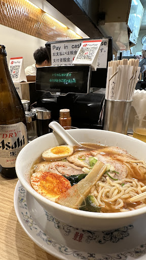 A cosy little ramen shop directly opposite the train station. Unlike most other ramen shops, they don't have a machine to order from. You inform the staff directly, English menus are available upon request. Tried the wanton and chashu ramen which was shoyu based. A very big portion with a hearty and light shoyu broth. The gyōzas are a must order! Light and cripsy and complemented the ramen perfectly! I also tried the miso ramen the next day which was equally tasty with a healthy dose of vegetables like cabbage and beansprouts together with a thicker and more flavourful soup! All in all, a decent meal for decent price! Not the cleanest and the shop can be quite warm when dining in the middle of the day during summer but worth the visit if you happen to walk by and feel like having ramen and a...