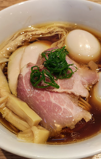 Read moreメニューは「醤油らぁ麺」をはじめ、つけ麺、まぜそばなどシンプルなラインナップ。入り口の券売機で食券を購入。初見なので基本の「醤油らぁ麺」にしようかと思ったけど、どうしても限定の「のどぐろそば」1,000円が気になるので思わずポチ。