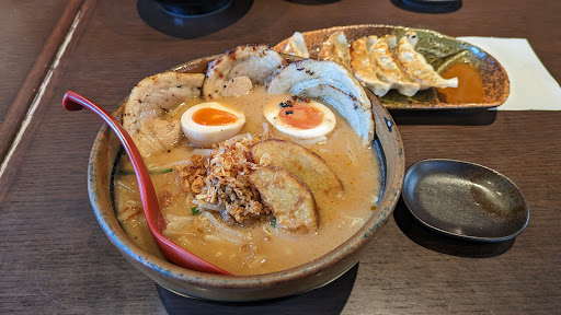 ラーメンは3種類の味噌から選べるが、初訪だったので一番人気とあった北海道の味噌漬け炙りチャーシュー麺にした 味玉トッピング、餃子5個と半ライスセットも頼んだ ラーメンはスープが美味しい、濃いめの味噌 炙りチャーシューが3枚ありボリュームがあった 味玉も半熟までいかないほどの柔らかさ 餃子は良くも悪くも普通、味噌だれがあったが美味しかった