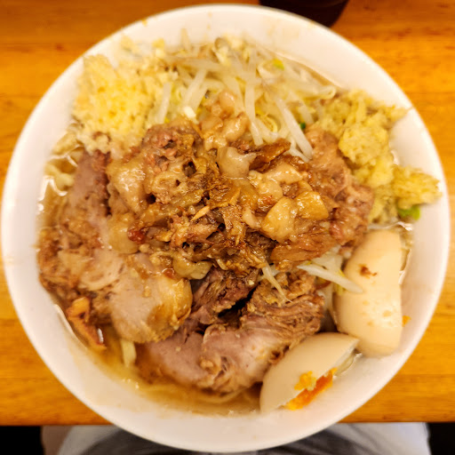 Read more13時43分に到着。 建物全体に足場がかけられていて、残念ながら看板を全部見ることはできなかった。 昼時を外して訪問したが、店の前には15人程度の並び。 食券は店の入り口前、5~6番目の表示があるのでそのタイミングで購入する。 今回はラーメンに味付煮玉子としょうがを追加して980円。 ラーメンがデフォルトで880円。 これでも値上げしたそう。 ぶた増しをしようかと思ったが、2日連続で二郎なので控えよう。