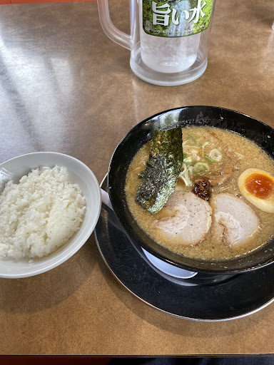 Read more平日お昼に来店。大きい道沿いの駐車場があるところを探していて入店。 駐車場は16台程停められるスペースがある。 店内は30席ぐらいだろうか。テーブル席が多いが1人で入店している人も多く見られた。 男性が多め。 店内には明るくハキハキとした店員さんがおり、サービスのレベルは高い。気配りなど対応が素晴らしい。 今回は初なので嵐げんこつらーめんとライス小を注文。価格はこれで1000円だすとお釣りが来る。 食べ終わったときは1300円だったかなと錯覚してしまったほどである。 ラーメンについて言えば豚骨醤油のベーシックな感じに思えた。ただ、胡椒を振りかけ、一口すするとパッとブラックペッパーの香りが広がり、激辛ニラなどもトッピングし楽しんでいるころには麺はなくなっていた。 作成は「麺を大事に」にしておけば、、、 ドリンクバーとアイスの販売があるのもユニークで楽しめると思う。 あと、この写真の旨い水についてだが、旨い。 ほぼ完璧な水だ。よく見てもらうと氷がガチ盛りになっているのがわかるだろうか? その溶け出した水分のみを頂く。臭みがなく、キンキン。そう、水については臭いと臭み、特に温度が重要だと考える。 ラーメンを食べた後にスッと入ってくる水。 これについては480円程だしても良いだろう。 ライスは炊き立てのご飯の味。 次は黄金...